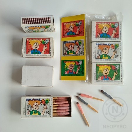 Dále byly v Jablůnce vyráběny tzv. Bengálské zápalky pro německou firmu Weco, protože jejich výroba u původního výrobce (firma Riesa ve východní části sjednoceného Německa) končila a o výrobek na německém trhu stále zájem byl. Proto ing. Rychetský z Pyros Praha tuto výrobu pro Weco v Jablůnce rozjížděl a organizoval exkurze jablůneckých zaměstnanců v sirkárnách Solo Sušice (tradiční československý výrobce zápalek) a Solo mu také poskytlo první přípravky pro máčení dřívek v pyrotechnických složích. Dřívka se máčela na obj. 11 nejprve v barevné efektové složi (zelené, červené nebo bílé) a po vysušení se ještě jednou namočila ve složi třecí, podobné jako u tradičních zápalek pro použití v domácnosti. Třecí slož se při škrtnutí o škrtátko na boční straně krabičky od zápalek zapálila a zažehla barevně hořící efektovou slož. Hotové bengálské zápalky se balily do papírových krabiček stejného vzhledu, jako měl původní výrobce, pouze kód výrobce a vzhled zápalek se trochu lišil.
